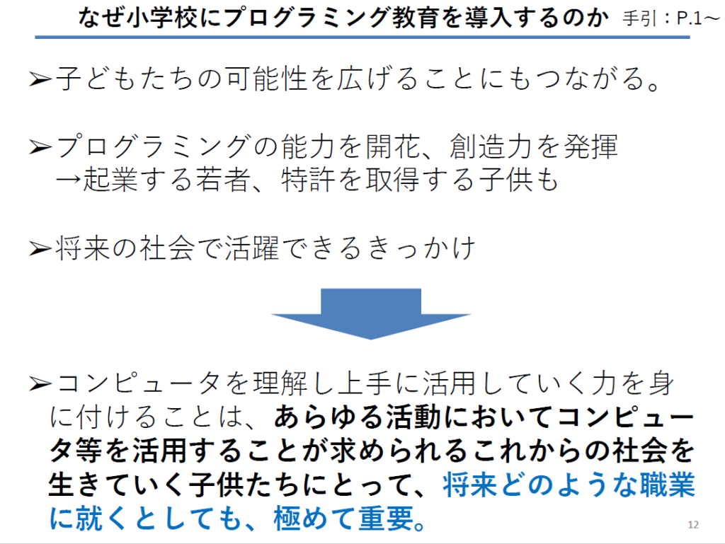 (文部科学省 小学校プログラミング教育の趣旨と計画的な準備の必要性について(1))